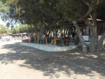 Besser könnte die Lage des Hotel Alex Beach nicht sein, es grenzt unmittelbar an den Strand von Theologos. Keine fünf Stufen sind es vom flachen an den Strand führenden Weg und schon steht man auf dem Sandstrand, der aber auch einige Steine enthält. Direkt am Meer ist ein zwei Meter breiter Kiesstreifen vorhanden, wie an den meisten Stellen des Westufers von Rhodos. Das Hotel Alex Beach verfügt über eine hoteleigene Strandbar, die schön beschattet tollen Meerblick bietet. Liegen und Schirme sind kostenlos von den Gästen vom Hotel Alex Beach nutzbar. An Wassersport sind Windsurfing, Kite Surfing, Kanus und Paddelboote direkt vor dem Hotel Alex Beach vorhanden, einmal pro Woche werden auch kostenlose Schnupperstunden angeboten.