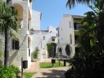 Die Anlage des 4 Sterne Hotel Bluebay Banus ist im Stil eines andalusischen Dorfs gebaut mit gepflasterten Straßen, Höfen, Plätzen und einer kleinen Kapelle. Die Gebäude sind lediglich zweistöckig. In ihnen befinden sich insgesamt 315 Zimmer. Sie sind in große Zimmer, Familienzimmer und Suiten unterteilt und verfügen (mit Ausnahme der Basiszimmer) über eigene Terrasse oder Balkon. Safe und Minibar sind gegen Gebühr nutzbar, ansonsten sind Telefon, Fön, Klimaanlage und eigenes Bad vorhanden. Das Hotel Bluebay Banús liegt direkt an der Autobahn, durch die dichte Bebauung mittels vieler Gebäude ist es im Hotelgarten rund um den Pool aber ruhig. Das Stadtzentrum von Marbella ist etwa 7 Kilometer entfernt. Das kostenlose WLAN in der Lobby vom Bluebay Banús beschränkt sich auf 10 Minuten täglich.