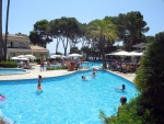 Das Hotel Iberostar Pinos Park ist wie ein langgezogenes U um eine Poollandschaft gebaut, das sich in mehrere Abschnitte aufgliedert. Auch ein 50 cm tiefes Kinderbecken ist vorhanden. Im hinteren Hotelbereich ist noch ein Wasserspielzeugpark mit Babybecken untergebracht, der verschiedene Wasserspielgeräte und auch eine Rutsche bietet. Liegen und Schirme sind an den Becken kostenlos nutzbar, ein Rettungsschwimmer ist am Hauptbecken ebenfalls stationiert.