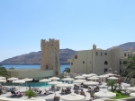 Das Hotel Lindos Royal liegt leicht oberhalb vom Vlycha Beach, einer kleinen Bucht etwas nördlich von Lindos im Süden von Rhodos. Das 4 Sterne Hotel bietet dank seiner Lage einen tollen Meerblick. Nur rund 150 m sind es bis zu dem Kiesstrand, wo die normale Infrastruktur eines Touristenstrandes vorhanden ist. Im Hotelgelände ist noch das Hotel Lindos Village integriert, dass zur selben Kette gehört. An Hoteleinrichtungen sind mehrere Becken vorhanden, zwei Restaurants, Mini Club, Empfangsbereich und ein schöner Garten mit einigen Terrassen vorhanden. Die insgesamt 303 Zimmer vom Hotel Lindos Royal verfügen über Mietsafe, Klimaanlage und Heizung, SAT-TV, Direktwahltelefon, möbliertem Balkon, Badezimmer mit Dusche und Föhn. WLAN ist gegen Gebühr in dem Lobbybereich vorhanden.