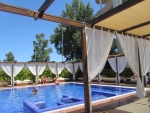 Die hoteleigene Poolanlage vom Hotel Zafiro Tropic ist sehr umfangreich. Neben dem großen Hauptpool und dem Kinderbecken mit Piratenschiff gibt es einen Pool nur für Erwachsene, die dort bei Chill-Out-Musik auf Bali-Sofabetten entspannen können. Liegen und Schirme stehen überall im Hotel Zafiro Tropic kostenlos zur Verfügung.