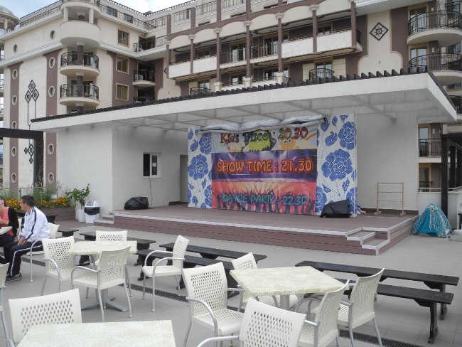 Neben dem Pool ist diese Animationsbühne zu finden.