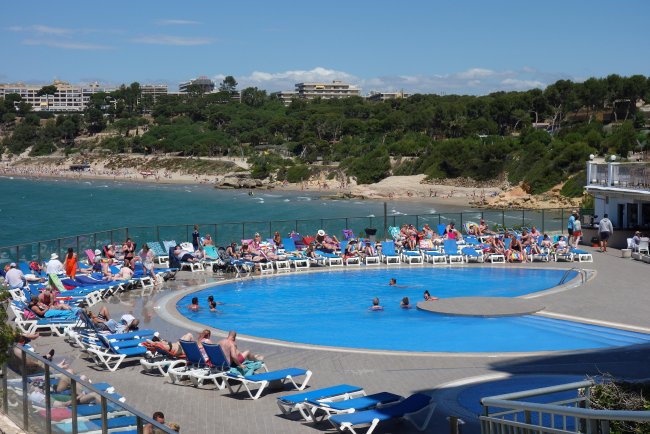 Vom Pool und der Sonnenterrasse des Hotels Best Negresco hat man Ausblick Richtung Platja Llarga.