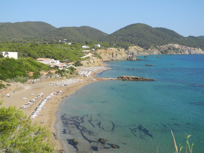 Die Bucht Cala Figueral, vom Poolbereich des Hotels Invisa Club Cala Verde aus gesehen.