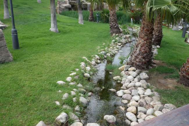 Durch den Garten vom Hotel Ametlla Mar fließt auch ein kleiner, künstlich angelegter Bach.