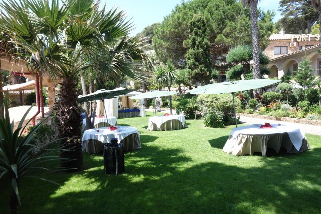 Blick in den Garten vom Hotel Eden Roc. Hier wird auch gerne das Abendessen serviert.
