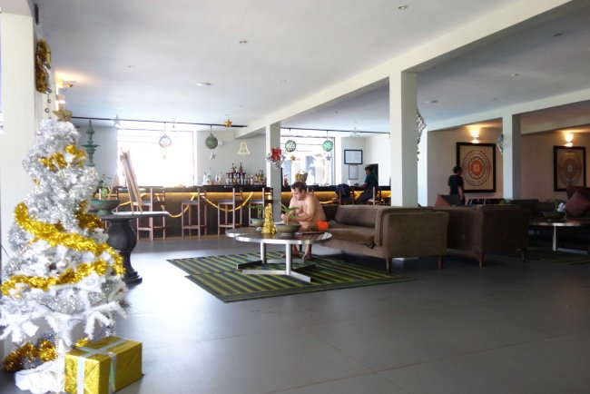 Die Lobby vom Hotel Earl´s Reef Beruwala, beim Foto im Januar noch weihnachtlich dekoriert.