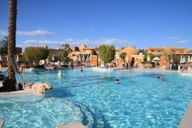 Blick über den Pool vom Hotel Sunwing Waterworld Family Star.