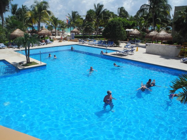 Blick über den Pool vom Hotel Viva Wyndham Azteca.