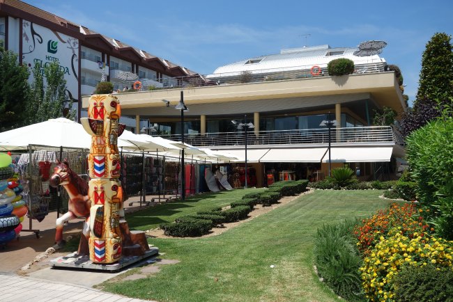Im Erdgeschoss vom Hotel Sirius und zur Promenade hin gibt es eine Verkaufsfläche eines Geschäftes.