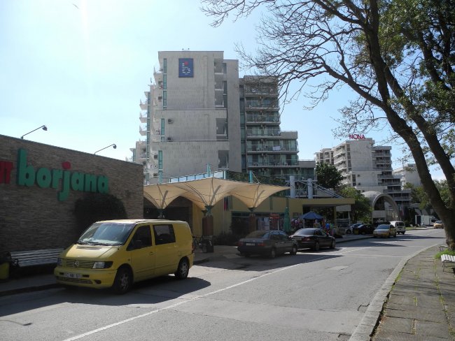 Das Hotel Borjana, von der davor verlaufenden Straße aus gesehen.
