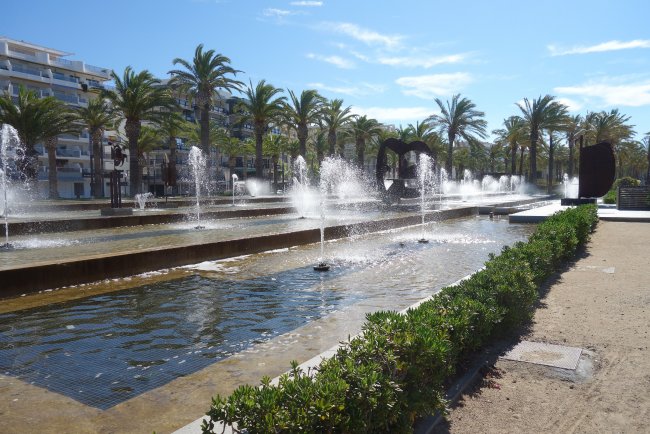 Im langen Grünstreifen von Salou hinter dem Strand ist wie hier direkt vor dem Hotel Blaumar Salou ein Springbrunnen integriert.