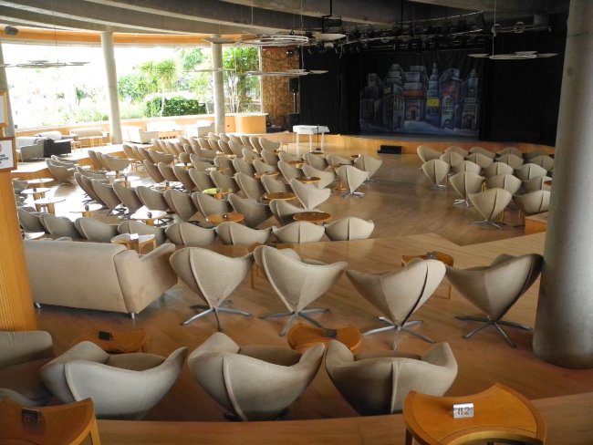 Im Erdgeschoss ist auch eine Bühne für die abendliche Unterhaltung im Hotel Faro Jandia & Spa untergebracht.