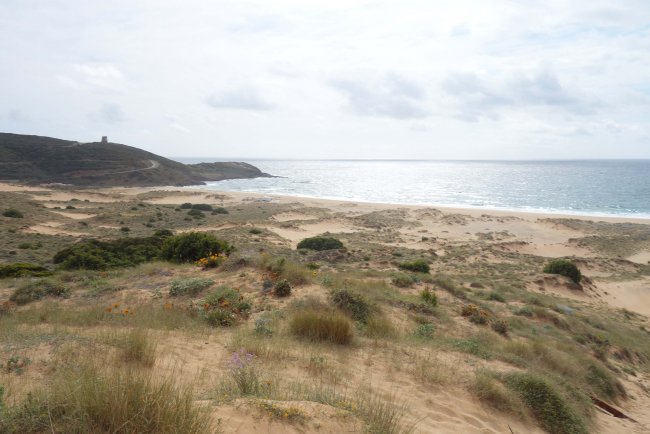 Zwischen dem Meer und dem Hotel Villaggio Sabbie D´Oro liegt die überwiegend bewachsene Sanddüne.