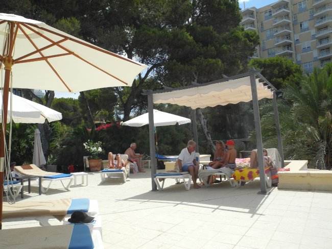 Außer den üblichen Sonnenschirmen sind auch einige elegantere Beschattungsmöglichkeiten im Hotel Hesperia Villamil vorhanden.