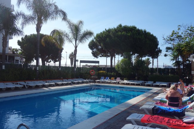 Die Liegen stehen etwas eng um den Pool herum, Sonnenschirme fehlen im Hotel H·TOP Planamar.