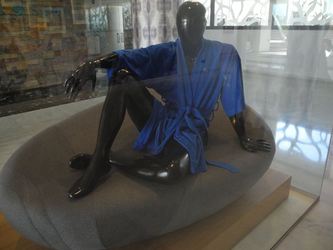 Viele Kleidungsstücke, Instrumente oder andere Erinnerungsstücke an bekannte Musiker wie dieser Bademantel von Elvis Presley sind im Hotel verteilt.