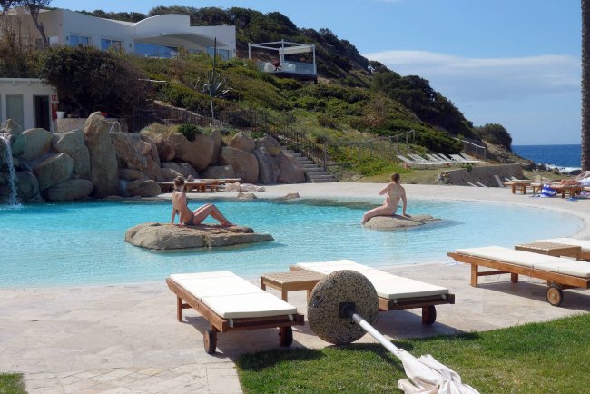 Die Felsen im Pool des Hotels Falkensteiner Resort Capo Boi bieten sich auch sehr schön fürs Fotografieren an.