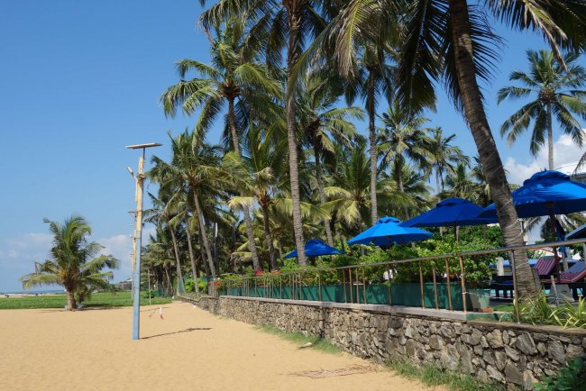 Direkt vom Strand aus kann man flach in den Garten des Hotels Camelot Beach gelangen.