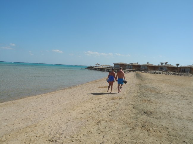 Das Riff vor dem Hotel Stella Di Mare Beach Resort geht an einigen Stellen bis an den Strand, Schwimmen kann man hier nicht.
