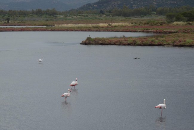 Ganz nah am Hotel Torre Salinas sind im See Stagno dei Colustrai auch häufig Flamingos anzutreffen.