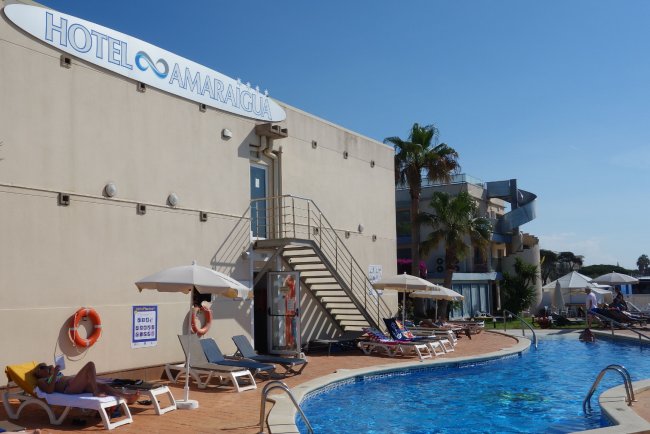 Das Schwimmbecken vom Hotel Amaraigua ist geschwungen angelegt.