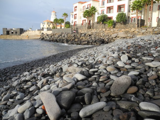 Der felsige Strand vom Hotel Quinta...