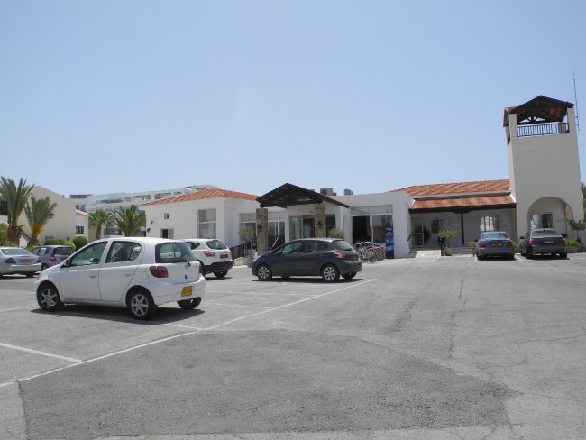 Vor dem Hotel Akti Beach Village ist ein großer Parkplatz vorhanden.