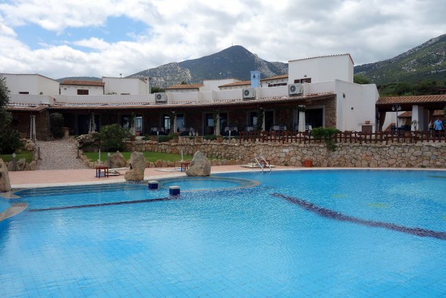 Blick über den Pool vom Hotel Nuraghe Arvu.