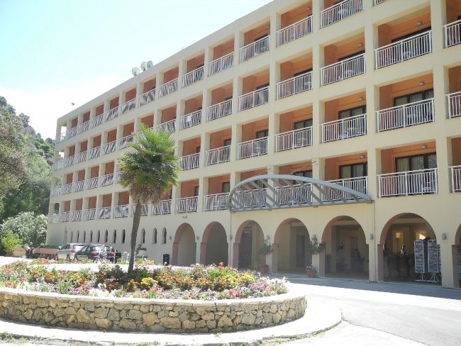 Der Eingangsbereich zum lti Grand Hotel Glyfada, von der Landseite aus gesehen.