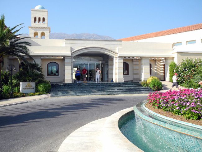 Der Haupteingang zum Hotel Pilot Beach Resort.