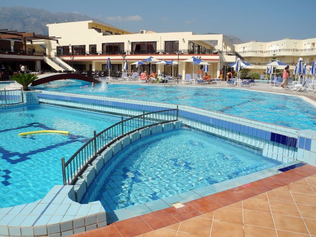 Der Hauptpool mit kleinem Babypool und etwas größerem Kinderpool links.