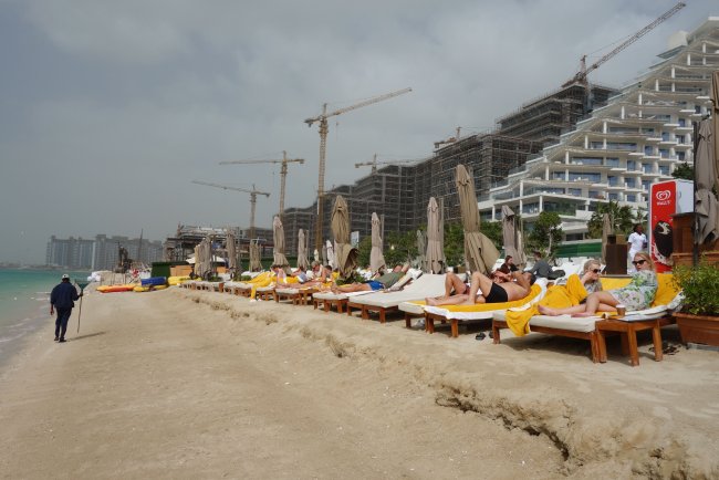 Der hoteleigene Strandbereich vom Hotel FIVE Palm Jumeirah Dubai ist fast 200 m breit, heller und feiner Sand verspricht eine schöne Zeit am Strand.