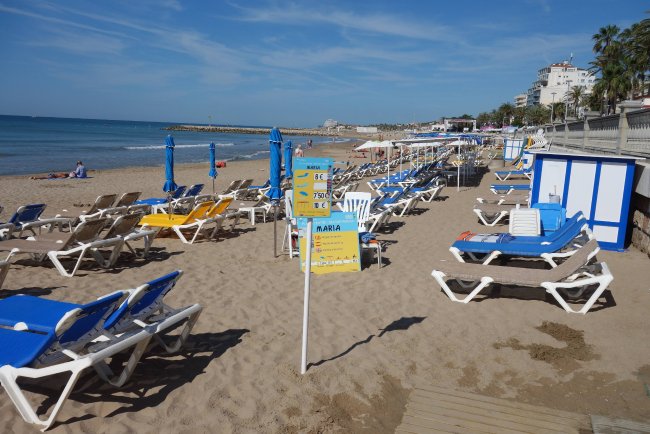 Mit 6 Euro pro Liege und 7,50 Euro für einen Schirm ist der Ausleihpreis nahe dem Hotel Calipolis relativ hoch.