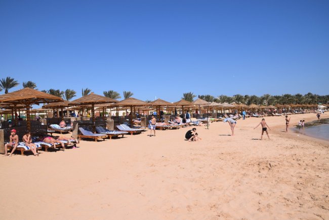 Der hoteleigene Strandabschnitt vor dem Hotel Sunrise Select Royal Makadi.