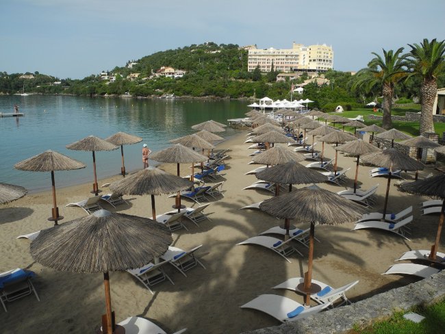 Das Hotel Grecotel Corfu Imperial bietet seinen Gästen mehrere kleine Strandabschnitte, Liegen sind dort kostenlos.