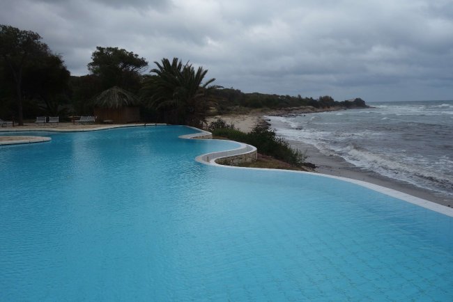 Der Pool am Meer ist als Infinitypool angelegt, die Gäste vom Hotel Costa dei Fiori scheinen so direkt ins Meer schwimmen zu können.