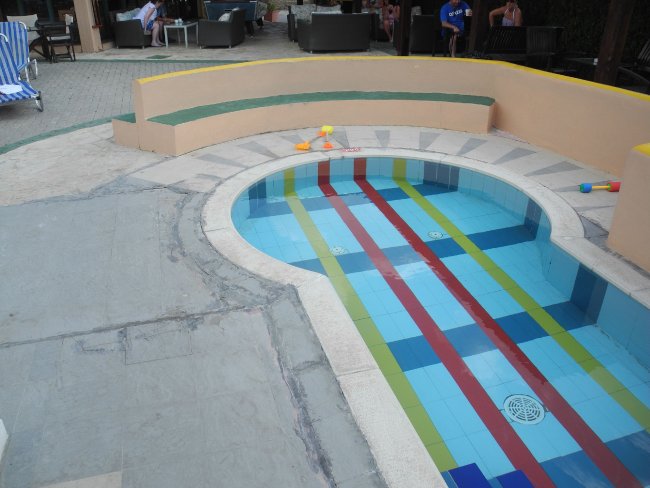 Der Kinderpool vom Hotel Summertime, sehr genau ausgemessen mit einer Tiefe von 63 cm.