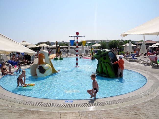 Nur 30 cm tief ist dieser Kinderpool mit diversen Spielmöglichkeiten.