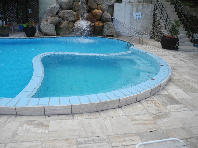 Ein Teil des Pools ist als Whirlpool eingerichtet.