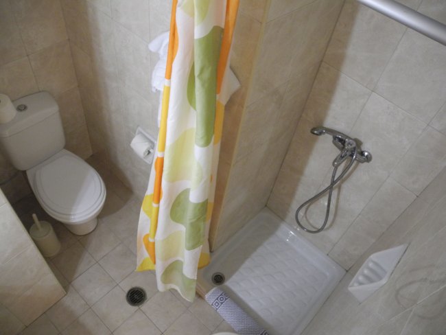 Die Badezimmer vom Hotel Dassia Beach sind sehr übersichtlich.