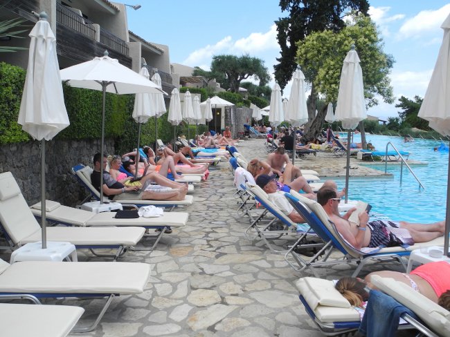Liegen und Schirme stehen etwas eng - Hotel Aeolos Beach Resort