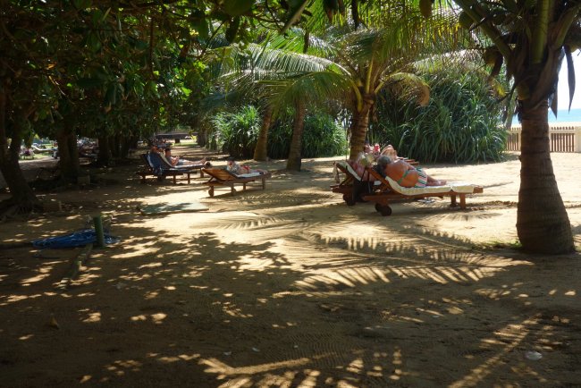 Die Liegen unter Palmen sind sehr beliebt bei den Gästen vom Hotel Turyaa Kalutara.