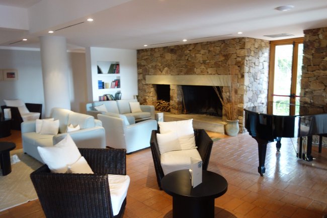 Die edel wirkende und sehr dezent eingerichtete Lobby vom Hotel Aquadulci