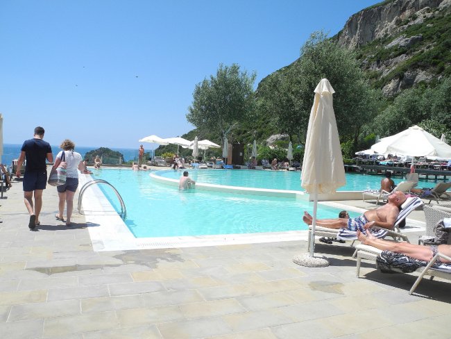 Der Pool vom Hotel Sensimar Grand Mediterraneo Resort & Spa liegt umgeben von der markanten Bergwelt von Korfu.