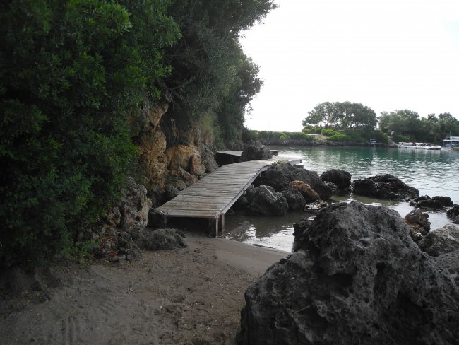 Rund um das Hotel Grecotel Corfu Imperial liegen mehrere kleine Strandabschnitte, die teilweise durch solche Stege über Felsen miteinander verbunden sind.