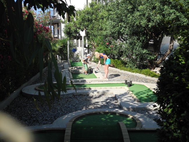 Unter Palmen und umgeben von vielen anderen Pflanzen kann man im Hotel Arminda auch eine Runde Minigolf spielen.
