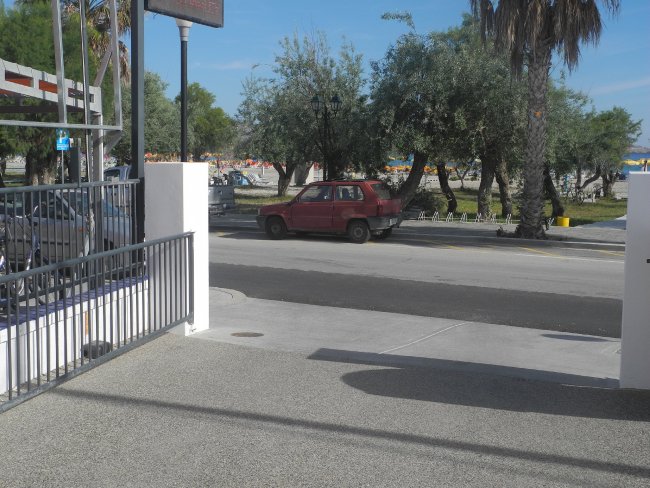 Weg zum Strand ist daher flach und asphaltiert, von dem Nebenausgang ist der Strand daher keine 20 m entfernt.