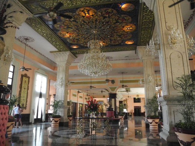 Die opulente ausgestattete, reich verzierte Lobby des Hotel Riu Palace Riviera Maya.