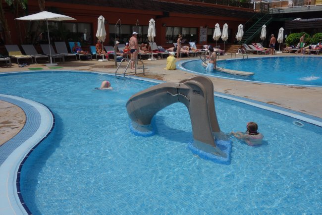 Auch ein Kinderbecken ist vorhanden für die kleinen Gäste, hier steht auch eine kleine Rutsche in dem nur 50 cm tiefen Pool für Kinder.